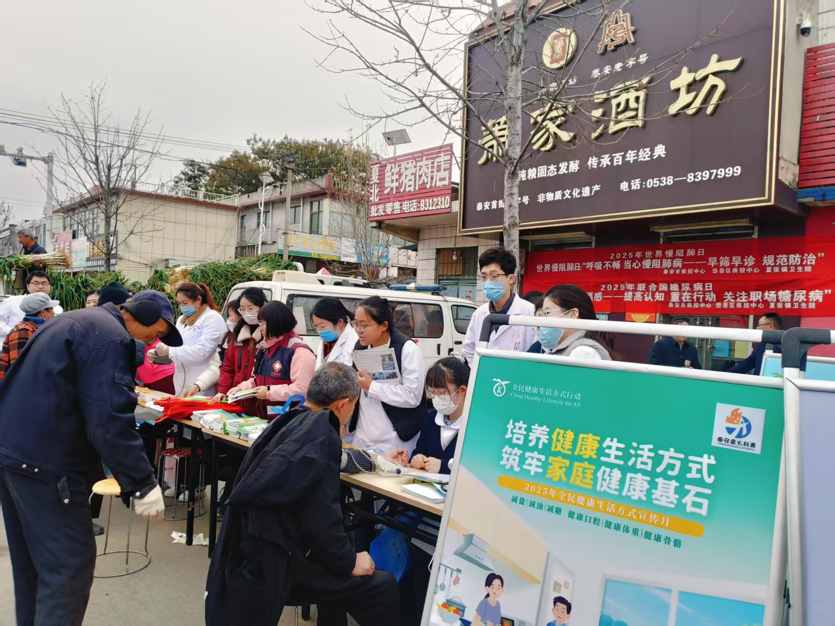 11月17日,岱岳区疾控中心联合泰安市疾控中心、夏张镇卫生院,在夏张镇开展联合国糖尿病日与世界慢阻肺日主题宣传义诊活动,将优质医疗服务送到群众“家门口”。
